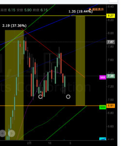 こちらは、ほぼ完成したことで、株の勢いは落ち着いていてるようですが、チャート的には、そろそろ買いの準備に入ろうかと。。。